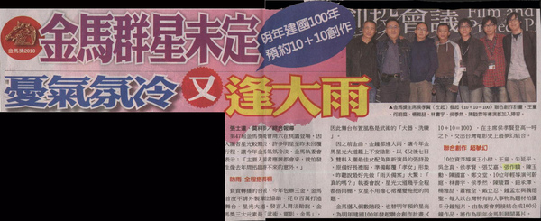 金馬邁入倒數階段,也替明年預約星光,為明年建國100年發起聯合創作計畫《10+10=100》,在主席侯孝賢登高一呼之下,交出台灣電影史上最夢幻組合。